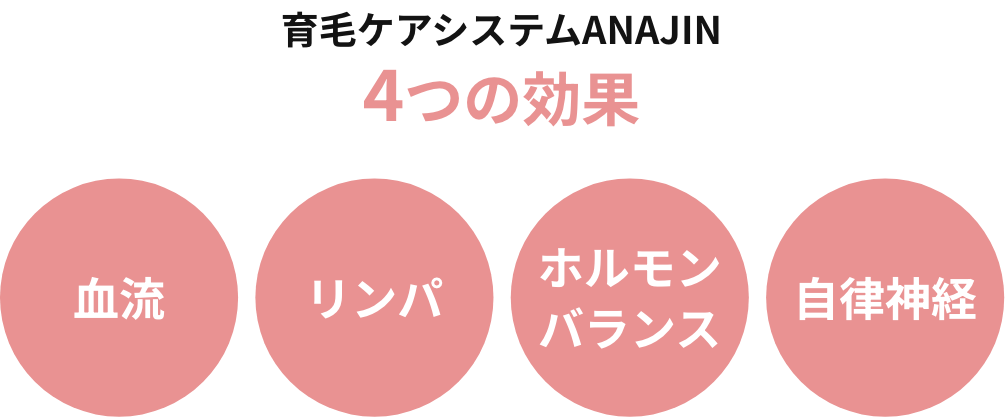 当サロンで使用する育毛ケアシステム「ANAGIN アナジン」は施術と薬剤により四つの力を生みだしその相乗効果により毛母細胞を成長期へと導きます。地肌トラブルや薄毛の原因は一つではありません。